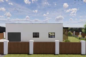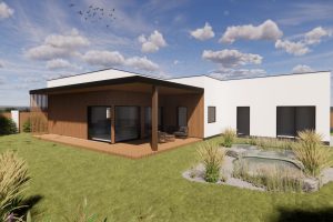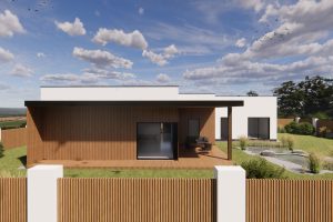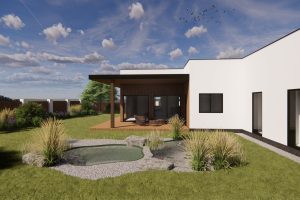 LULUSEL je jednopodlažní dům v půdorysném tvaru do „L“ zastřešený plochou střechou, který je doplněn o garáž a zastřešenou terasu s výhledem do zahrady.